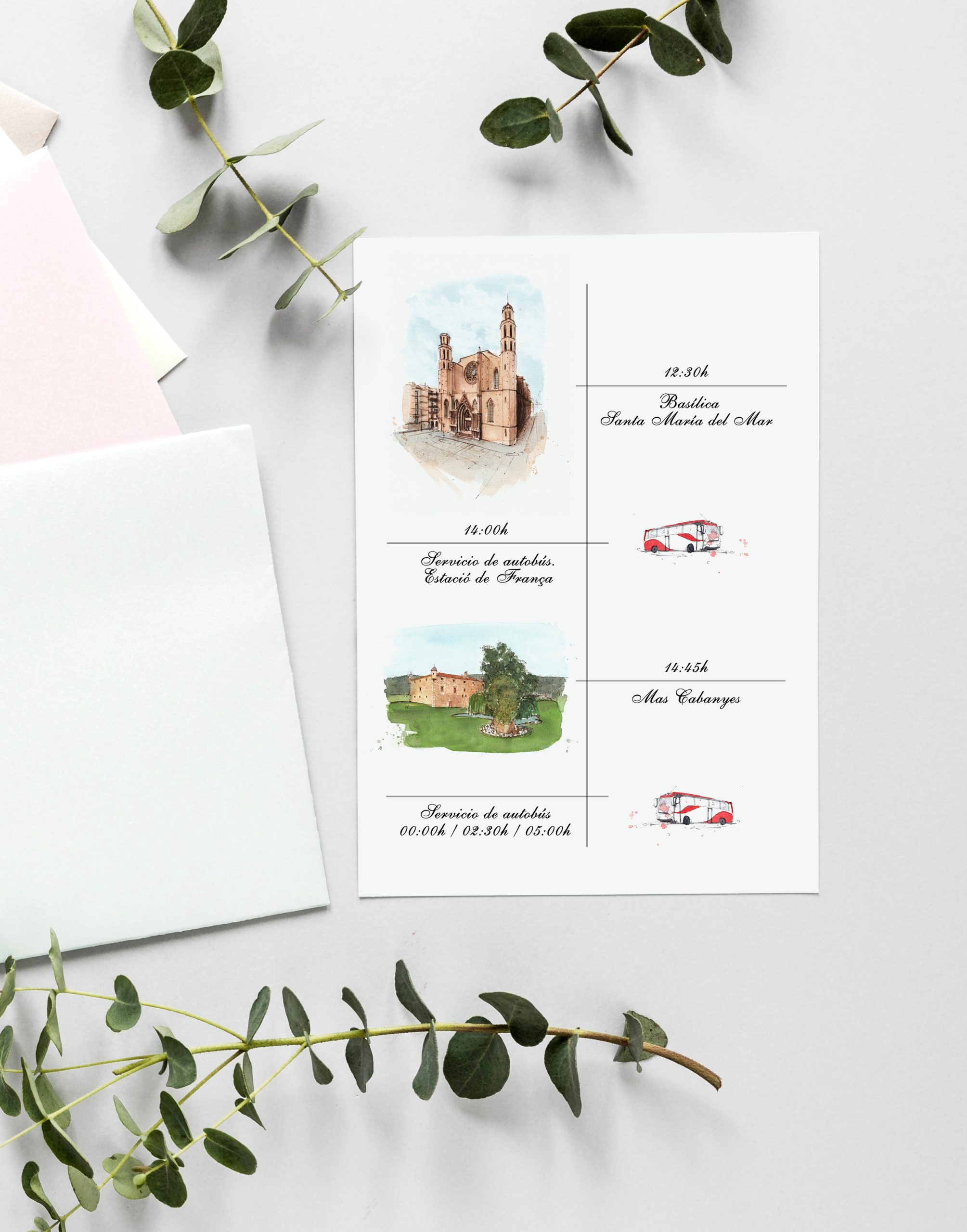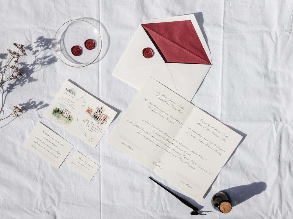 Trabajo cada tarjeta como una extensión del diseño original. Utilizo papeles de alta calidad, como el verjurado o el algodón rústico, para que el tacto transmita la importancia del evento. Al ser piezas personalizadas, adapto la maquetación para que el texto sea legible y elegante, integrando acuarelas que sigan la línea artística de tu boda.